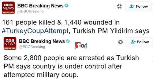 Turkish Prime Minister, Binali Yildirim, on Saturday said 161 people were killed, 1,440 people wounded, while 2,839 soldiers including high-ranking officers, have been detained as a result of the attempt to overthrow the civilian government in the country, declaring that the attempted coup that is now over.