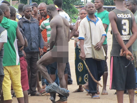 Armed Robber Escapes Jungle Justice After Being Stripped N*ked & Flogged in Ebonyi (Photos)