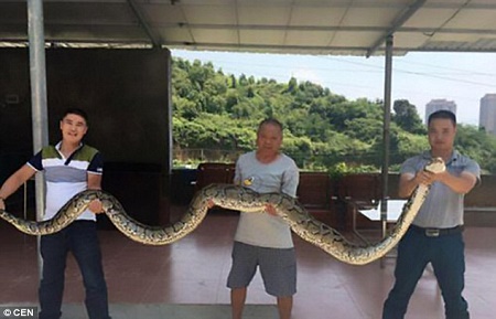 The 14-foot-long snake found lurking in a farmland in south-east China's