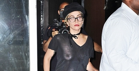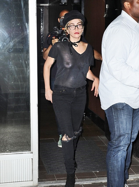 U.S Singer, Lady Gaga Flashes Nipples as She Goes Braless Under a See-through Top (Photos)