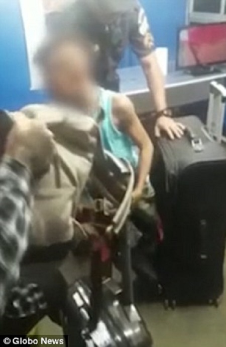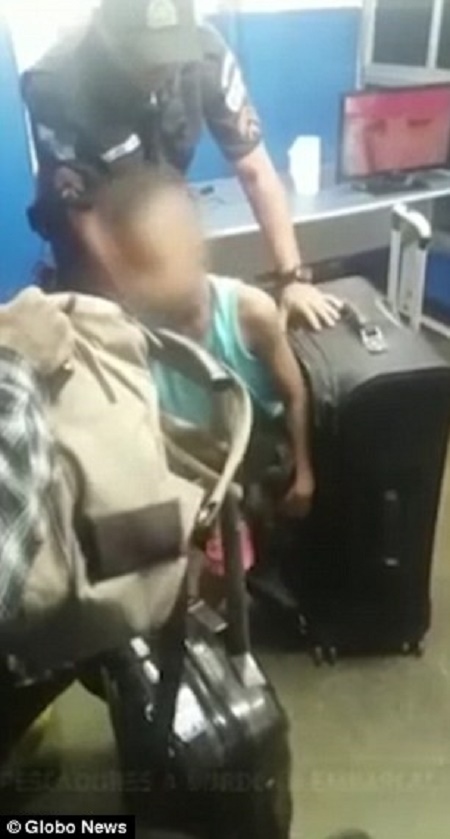 It was shock and despair on the faces of security officers at a Brazilian airport as an 11-year-old boy was discovered hidden inside a luggage.