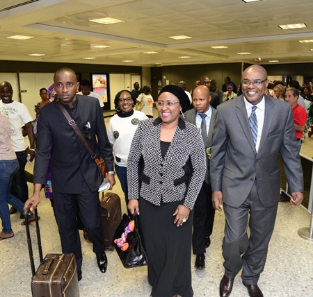 The Signal, President Muhamamdu Buhari's wife, Aisha Buhari, who arrived the United States of America late yesterday for some official events in Washington DC, was pictured arriving the country with a Hermes Birkin 35cm Porosus Crocodile Gold Hardware Bag worth $105, 000 (N40, 950, 000) at $1 to N390 current conversion rate.