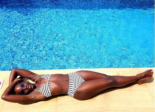 The actress born in Mexico to Kenyan parents and raised in Kenya is looking totally amazing and hot as she posed in her bikini showing off her gorgeous body.