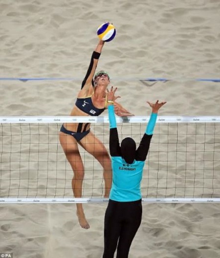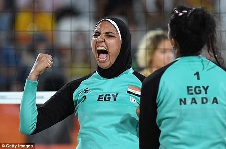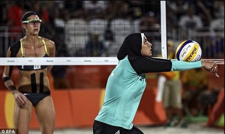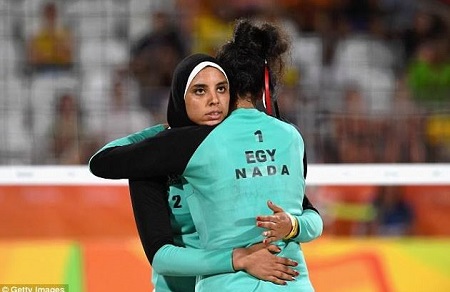 The Egyptian women's beach volleyball team took to the sandy arena adorned some really unconventional dressing.