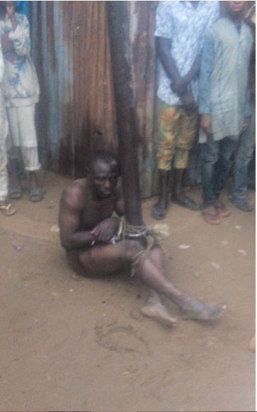 "The early hour of this Tuesday morning around 4:20 a notorious rapist that has been disturbing my area yankaba by Badawa layout in Kano, for some time now was caught by the vigilante group and tied to a poll after the wife of the owner of the house he entered raised alarm"