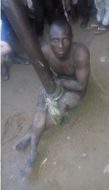 The culprit was heavily beaten, stripped n*ked and tied to a stake by the mammoth crowd in the usual culture of jungle justice in Nigeria which has been widely discouraged by security agencies in the country.