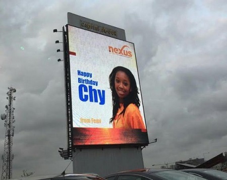 A man named Femi who really cares for the lady named Chy paid for a full billboard advert just to wish her a happy birthday in Lagos.