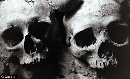Two suspected criminals have been caught red-handed trying to sell a human head that has been burnt beyond recognition.