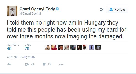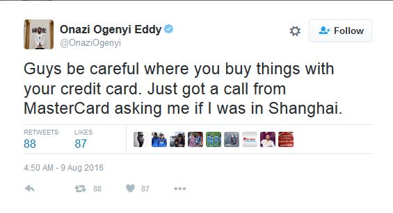 Ogenyi Eddy Onazi is not in his best of moods currently following the massive fraud committed on his finances. It happened that a fraudster had been using his credit card to withdraw funds for the past three months until a discovery back Mastercard.