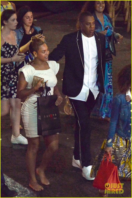 Superstar singer, Beyonce was spotted on Tuesday walking barefoot after getting dinner at Aurora in Capri, Italy. The 34-year-old superstar was joined for dinner by her husband, Jay Z for dinner.
