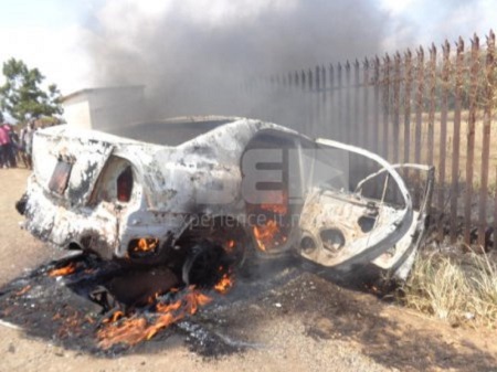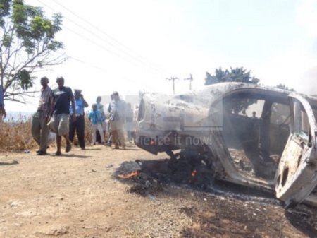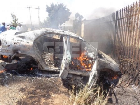 The boy, only identified as Odhiambo, tried to flee the scene but only managed to crash the car in a ditch. He escaped on foot as the car was engulfed in flames. Police are looking for the boy.