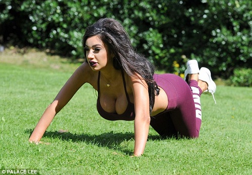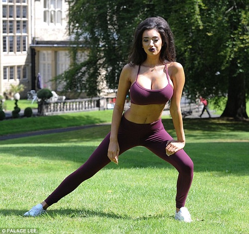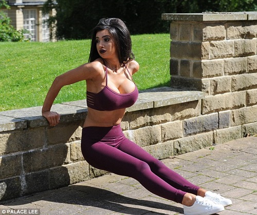Too Much Boobs! Ex- Celebrity Big Brother Contestant Chloe Khan Shows Off Massive Boobs While Exercising (Photos)