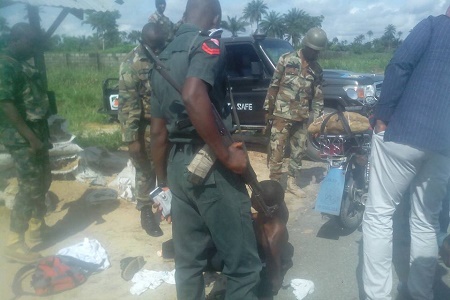 The chairman on his usual ways of checking the well being of his security agencies mounted on diverse checking point along the road stopped yesterday and met them with the hoodlum and wait to ensure that he was taking to the appropriate quarter for proper investigation and prosecution. In a swift response, the security agencies handcuff him and take him away.
