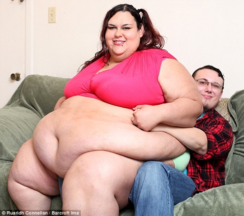 Morbidly obese model who dreams of weighing 1000lb eats 8000 calories a day and loves being fed through a funnel by her boyfriend in a bid to eat until she's too fat to move.