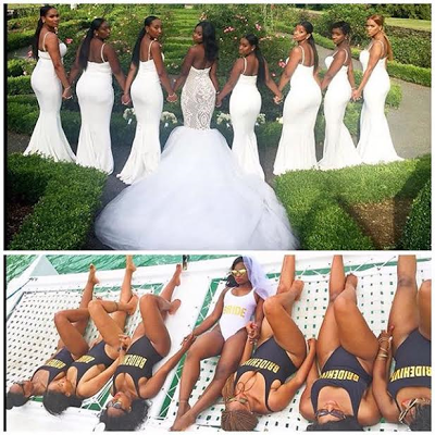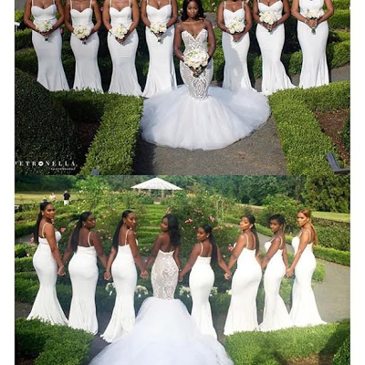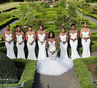 A bride identified as Shaquana, who got married to her beau, Andrew last weekend, let her bridesmaids dress in all white, as a lot of people think it is an old-fashioned rule and that this new bride is probably one of them.