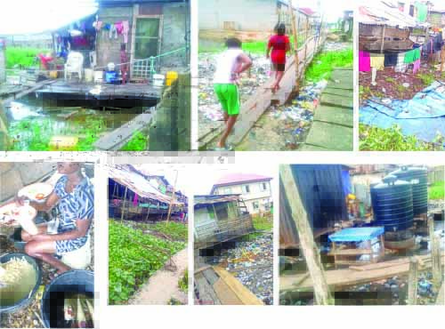 With no identifiable name of its own, a repugnant, sordid and garbage-infested slum is located along the banks of a canal that separates the Mazamaza neighbourhood from Monkey Village in the Agboju area between Oriade Local Council Development Area and Apapa Local Government Area of Lagos State.