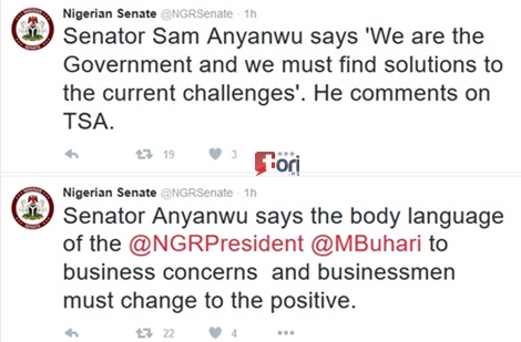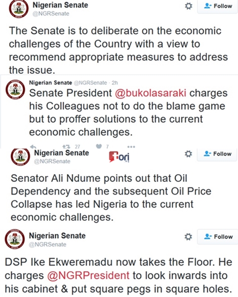 Below are tweets we culled from Nigerian Senate's official Twitter page;