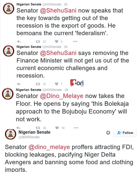 As Nigerian lawmakers continue to deliberate on the floor of the Senate over the state of the economy and how it can be resolved, the issue of removing the Minister of Finance from office, were also discussed.