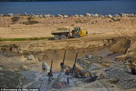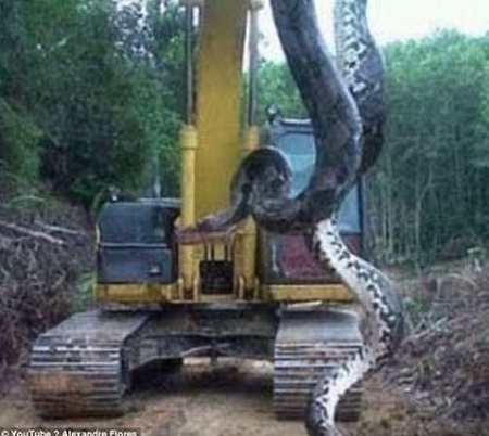 An Anaconda snake with a mind-boggling size has been uncovered in far South America with a specialized machine - bulldozer deployed to move it.
