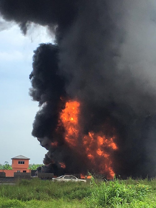 "Just now, 3:05pm, Mobil Tanker conveying petrol caught fire along Lagos-Ibadan express way. My car was just opposite in top speed when the tanker exploded. Four persons has been declared dead but I live."