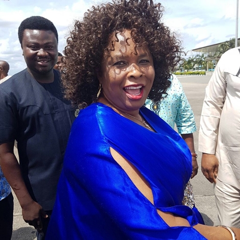 pictured all smiles with her husband as they arrived at the Port Harcourt International Airport on Sunday enroute to Bayelsa State, former first lady, Dame Patience Jonathan, has been trailed by yet another scandal.