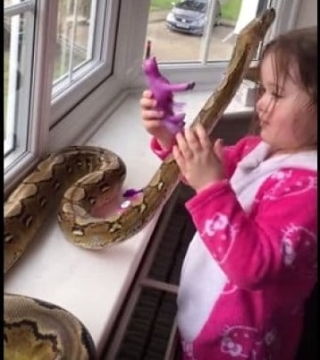 The video clip of an innocent child who genuinely loves her pet and does not understand the danger of interacting with a large python, has gone viral online and on social media.