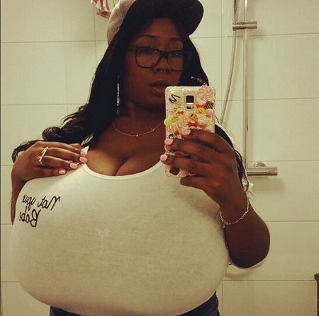 A black lady with monstrous breasts has been unveiled from her hiding place on social media as the enigmatic size of her mammary glands causes endless commotion among men.