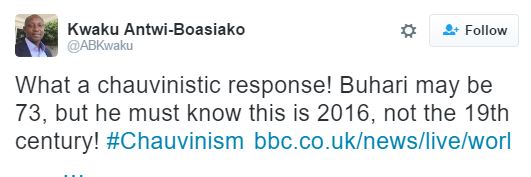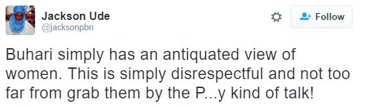 Many Nigerians have expressed displeasure for Buhari's comments with some calling them "backward".