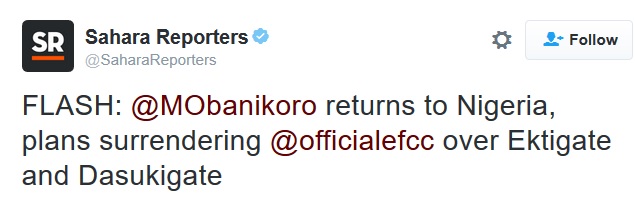 SaharaReporters revealed on its official Twitter account that Obanikoro who reportedly touched ground early this morning in Abuja, the nation’s capital enroute London Heathrow, was said to have stayed away first, because no formal invitation had been extended to him, noting that all that had been said and reported about him were not in official capacity.