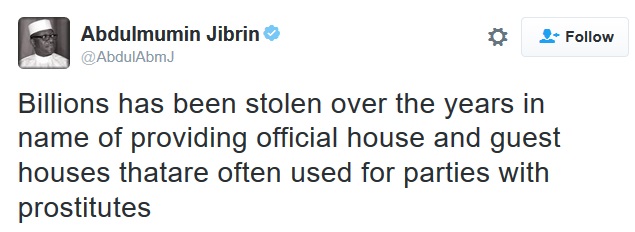 The suspended lawmaker, Abdulmumin Jibrin has in a new statement accused members of the House of Reps of using official guest houses for partying with prostitutes
