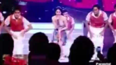 According to The Sun UK, Marian Rivera was performing on Filipino TV show SOP when the top of her dress slipped, exposing her breasts.