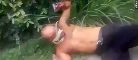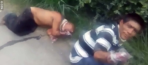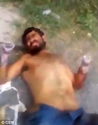 The man lying on the ground is asked why he was kidnapped, but he makes no reply. One of the victims reportedly died before he could get medical treatment and the other six were in critical condition in hospital.