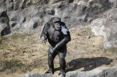 The zoo's management insist the chimp, doesn’t inhale, and that when thrown a lighter by he trainer, the chimpanzee knows how to light her own cigarettes.