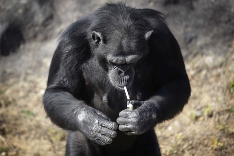 The photos of an old ape have gone viral. The old animal has a naughty habit that has made her very famous. See how the chimpanzee smokes and how often it does it.