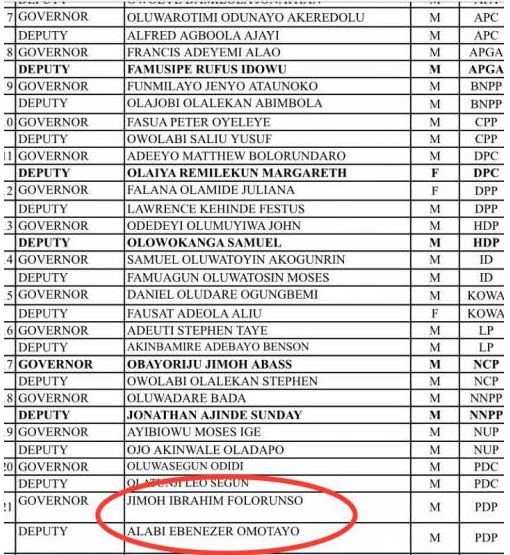 The Independent National Electoral Commission (INEC) on Thursday evening, shocked Governor Olusegun Mimiko of Ondo State by listing Jimoh Ibrahim as the governorship candidate of the Peoples Democratic Party (PDP) in the November 26, 2016 election in the state.