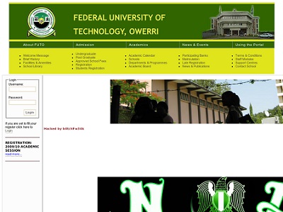 Popular reports on the social media reveals that the official school website of the Federal University of Technology, Owerri, has been hacked by suspected students.