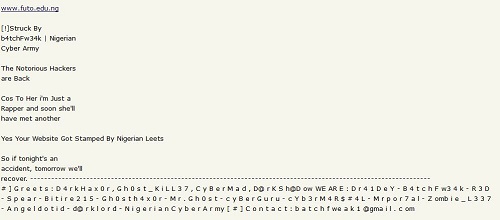 A hacking syndicate known as the Nigerian Cyber Army who have been terrorising several websites in Nigeria have attacked the official website of the Federal University of Technology Owerri, FUTO.
