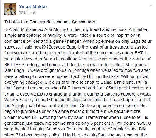 Another Nigerian soldier, Yusuf Muktar close to the late family man has penned another heart-rendering piece which can be read below:
