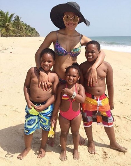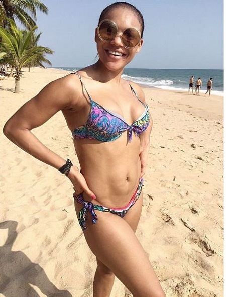 S*xy Mama: Hot Ex Nigerian Beauty Queen Shows Off Toned Bikini Body on the Beach (Photos)