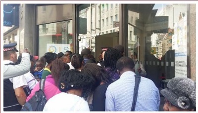 According to an email from a reader of the Linda Ikeji Blog, Nigerians flooded the Nigerian High Commission in London for their Bank Verification Number, BVN registration and the event got rowdy when Nigerians were locked out of the buidling while the police were called on them by someone. They were also charged a sum of £30.00 each for the registration which is free in Nigeria.