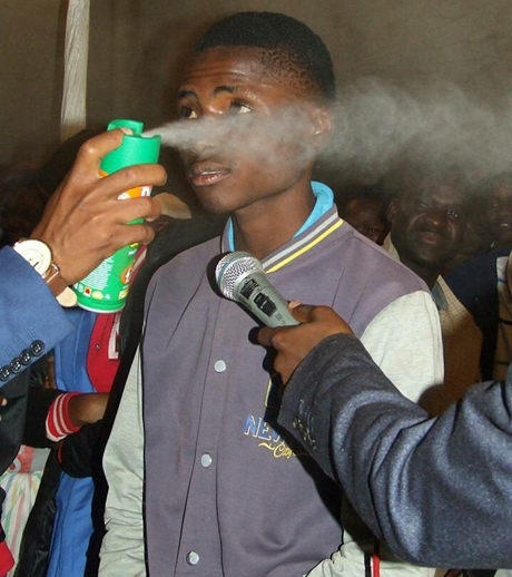 Photographs of the Doom-spraying at a service and prayer meeting over the weekend were shared on a Facebook account allegedly belonging to the prophet.