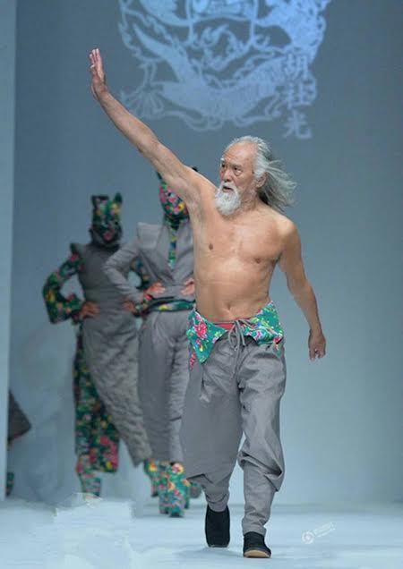 Wang’s history in martial arts have kept the silver haired old man in shape and fashionable.
