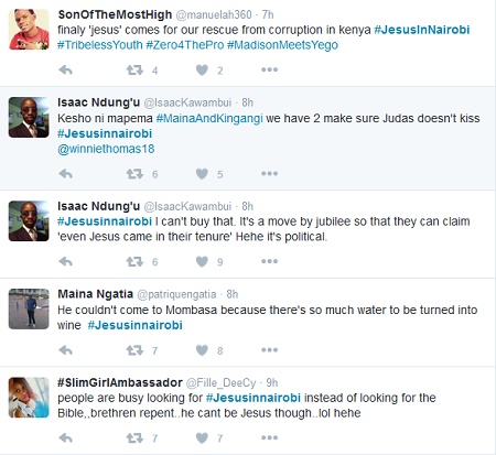 Kenyans took advantage of the opportunity on Twitter by using the hashtag #JesusInNairobi to share their excitement.