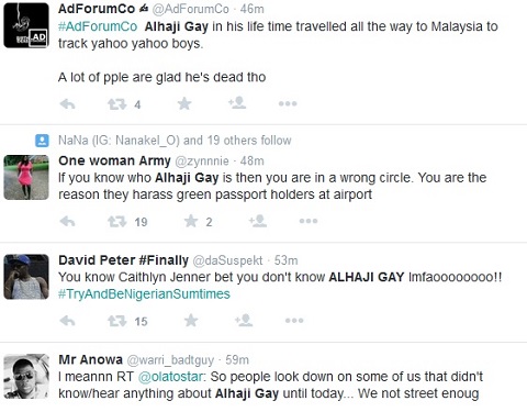 It seems Yahoo boys are happy he died, see reactions of his death on social media:
