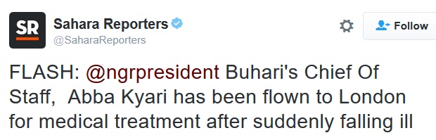 Abba Kyari, the chief of staff to President Muhammadu Buhari, has been urgently flown to London, the United Kingdom.