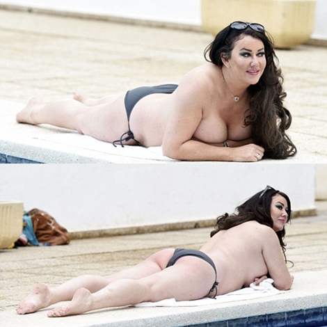 Big Brother star, Lisa Appleton puts on an eye-popping display as she strips to just her bikini bottoms and sunbathes topless in Spain.