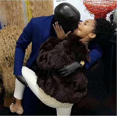 In the picture, the man looked extremely dark in complexion with the lady seemingly light-skinned. They were hungrily engaged in a french-kiss that indicated both parties could have been away from each other for too long.