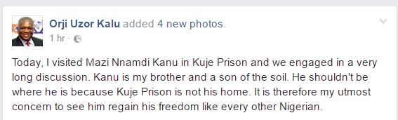 After the visit today, 16th of December, 2016, Mr. Kalu shared photos of himself and Kanu on his official Facebook page.
