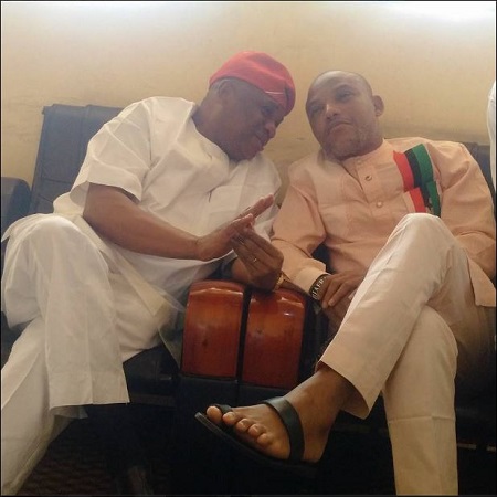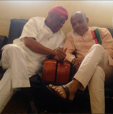 Former Abia governor and latest member of the ruling All Progressives Congress, Orji Uzor Kalu has paid a publicized courtesy visit to Mazi Nnamdi Kanu at the Kuje prison, Abuja from where he is facing trial over treason at the Federal High Court.