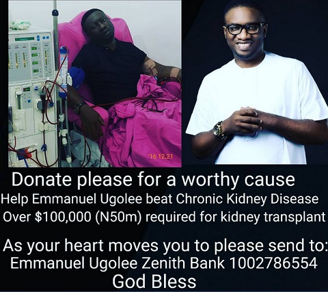 Popular TV Lagos presenter, Emma Ugolee, who is widely known for his engaging programme, 'The Gist', and who has been suffering from Kidney failure and has been on dialysis for many years now, has publicly cried out for help.